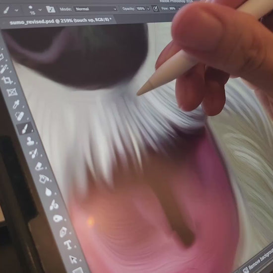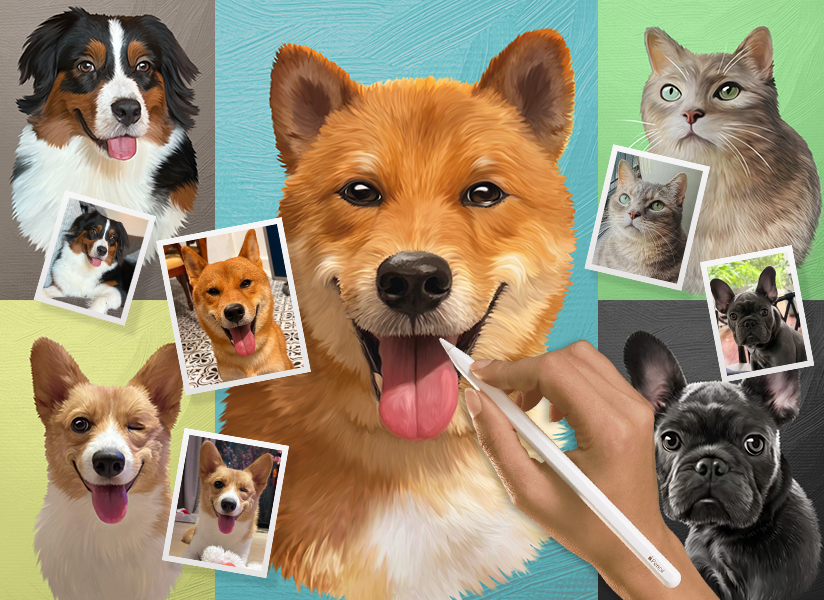 Each pawtrait is hand-drawn, digitally by our talented artists, infuse every stroke with care, capturing your furkid's unique charm down to the finest hair.
